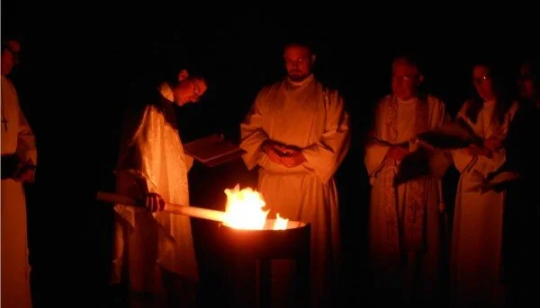 The Great Vigil of Easter is the holiest of the Holy Triduum, and therefore of the entire Church Year. On this sacred day, we gather outside around a burning pyre at sunset, and light the Paschal Candle. We process into the church for readings and meditations on the entire story of salvation as we await the long-coming event. At the symbolic moment of resurrection, the lights come up, bells ring (bring your own!), and we break into great celebration.
